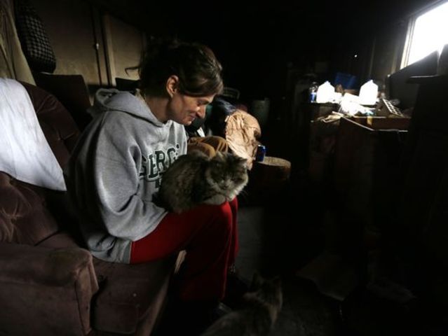 On a chilly morning, Tammy VanMeter and her kittens came out from underneath a blanket to find the flames had gone out inside a cast-iron stove that heats her makeshift home.